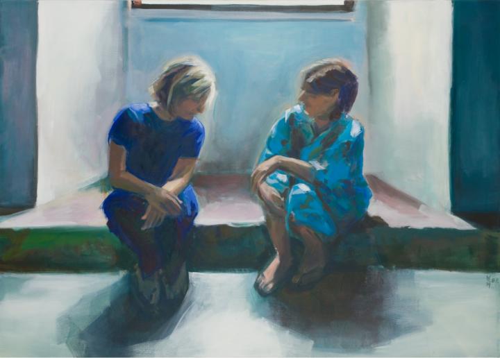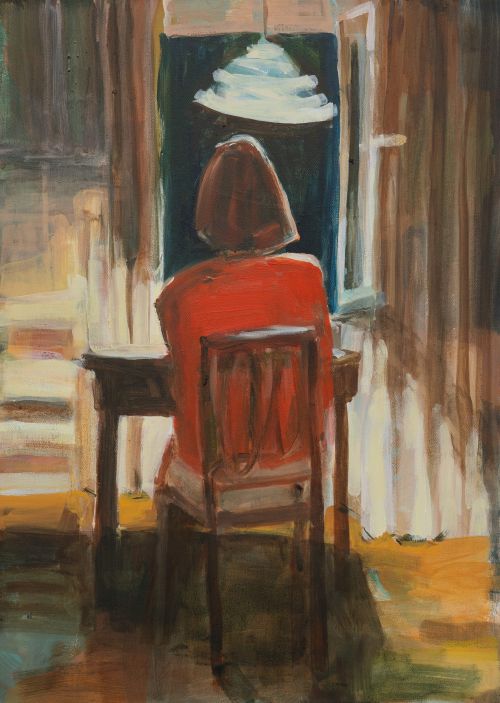 Am Fenster, Acryl auf Leinwand, 50 x 40 cm, 2025